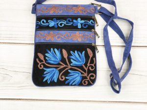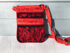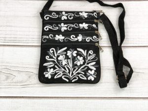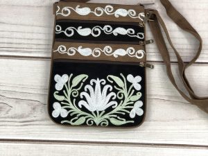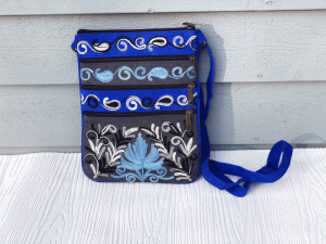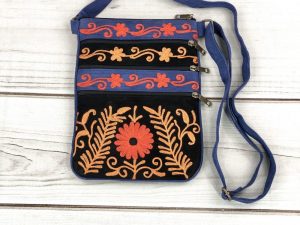 Contemporary and functional cross body bag which offers high style. Beautiful patterns, embroidery, and colors.