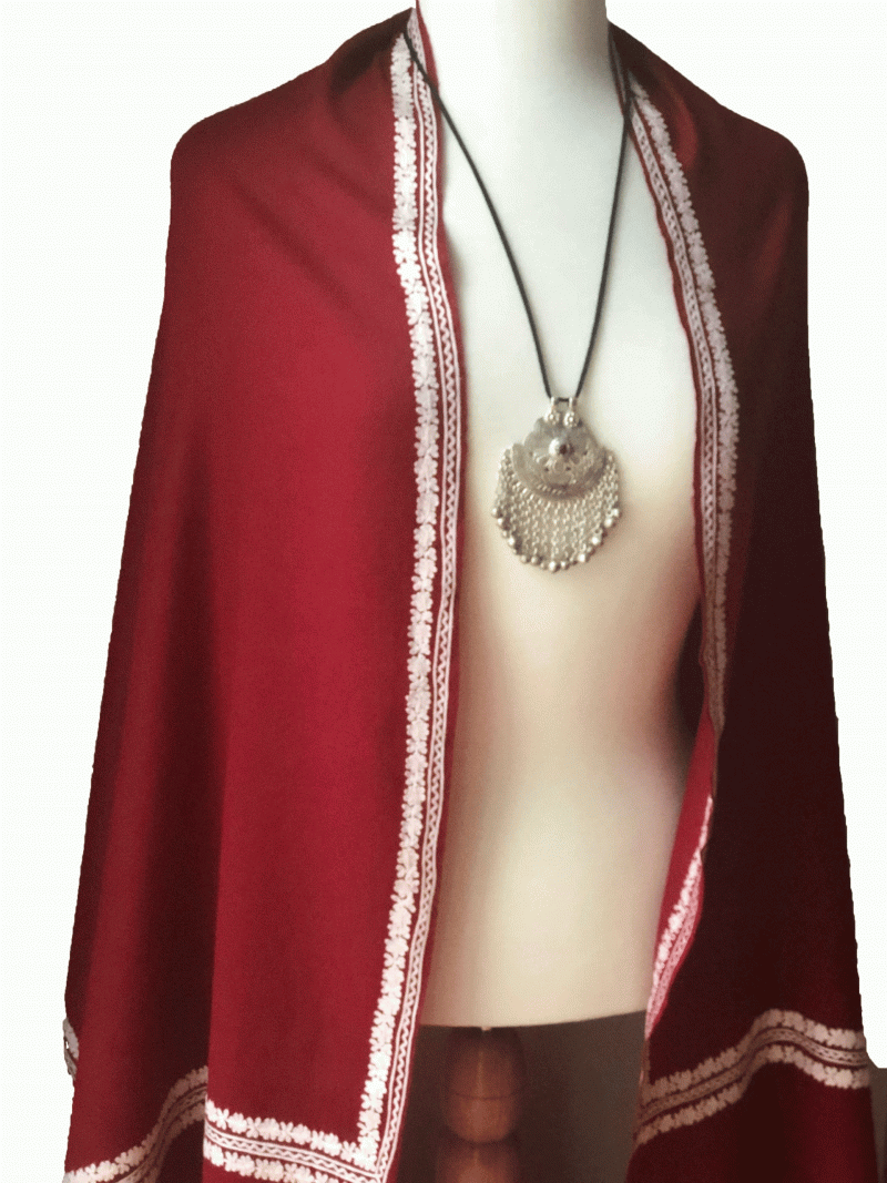 Embroidered wool wrap.