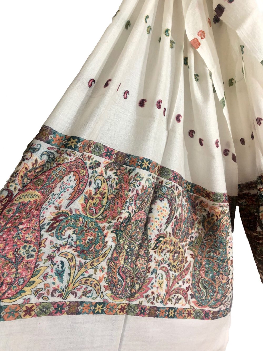 This collection of fine wool scarves has been inspired by the antique Jamawar and Kani shawls. The wool has a soft luxurious feel similar to the world renowned authentic Pashminas.