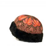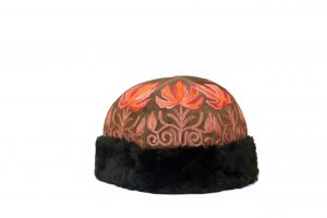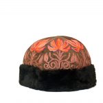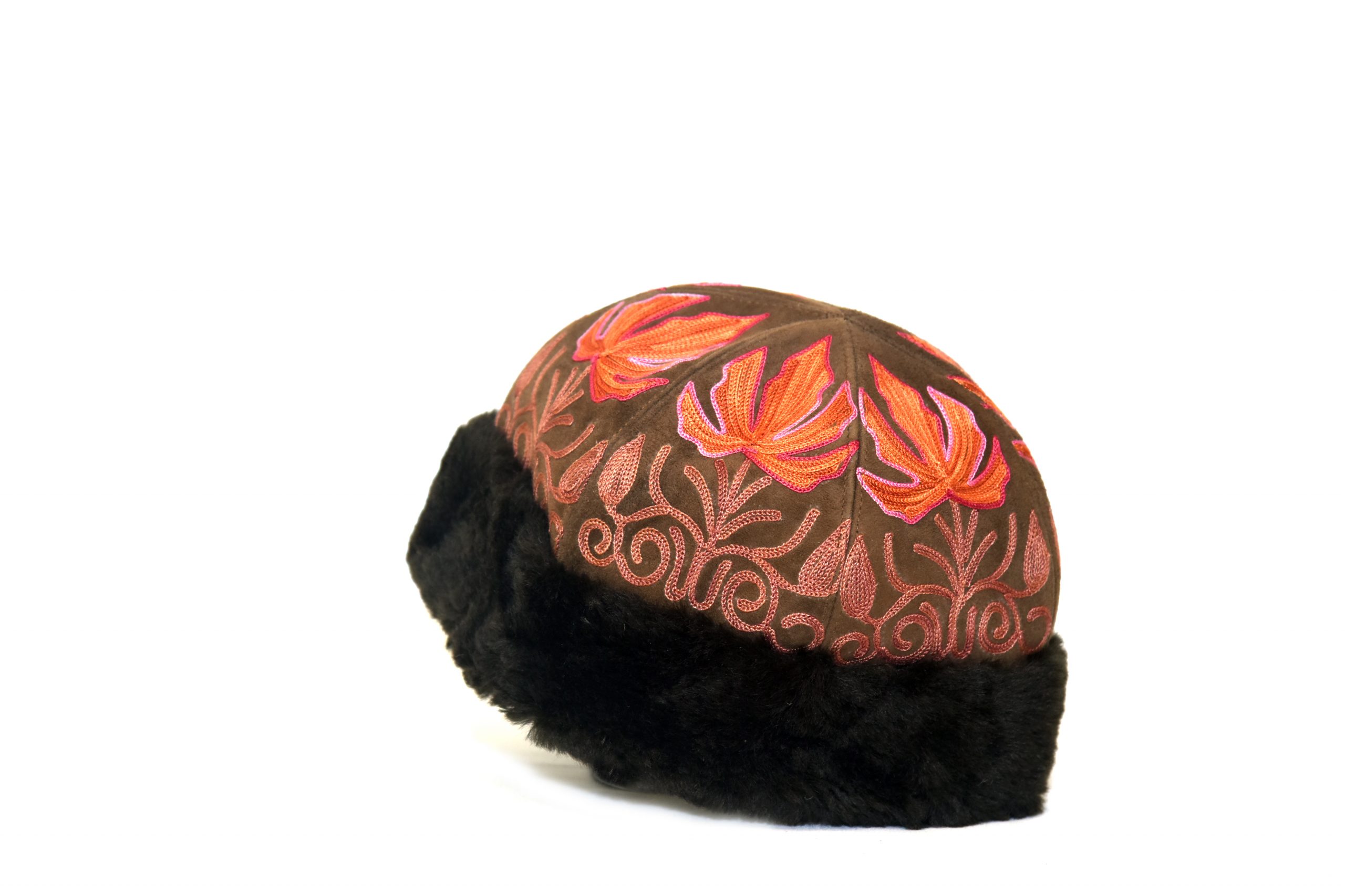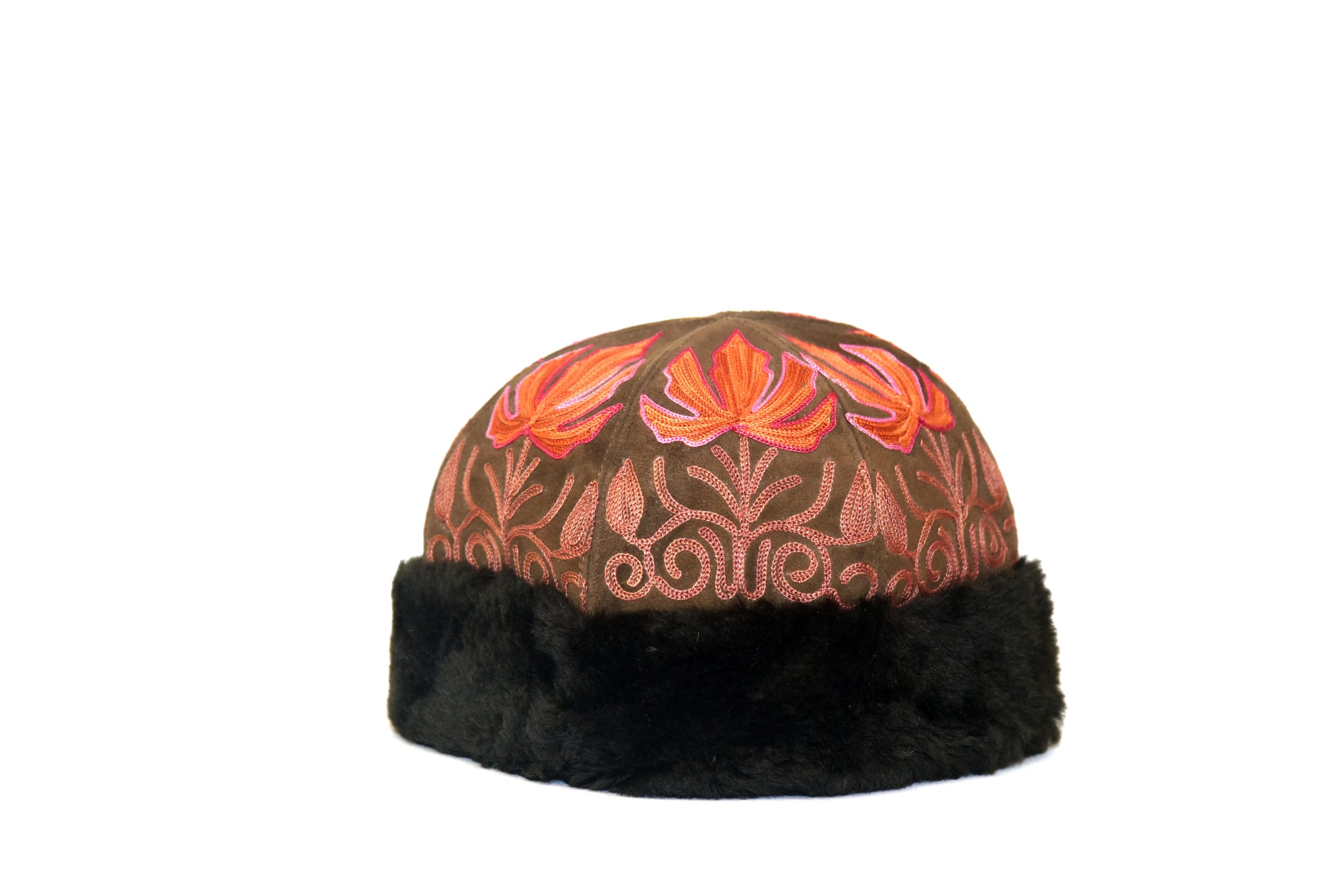 Color: Dark brown base and orange/pink emb.